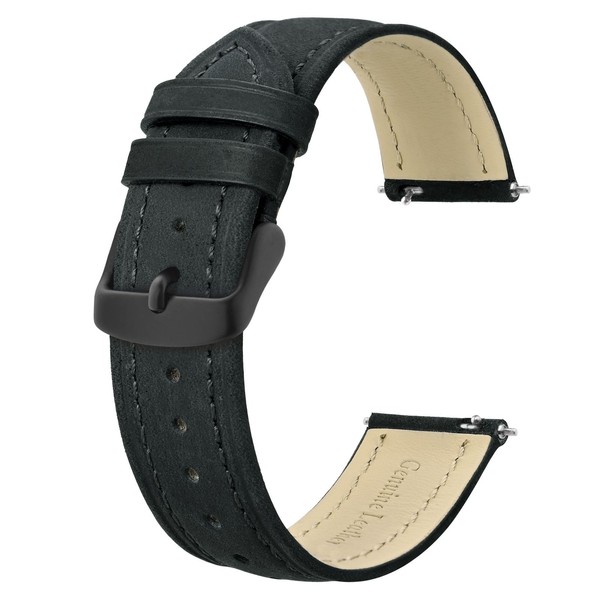 BISONSTRAP Extra Long Strap 20 mm 22 mm, Leather Watch Strap for Men, XL Replacement Strap for Large Wrists, Leather, No gemstone