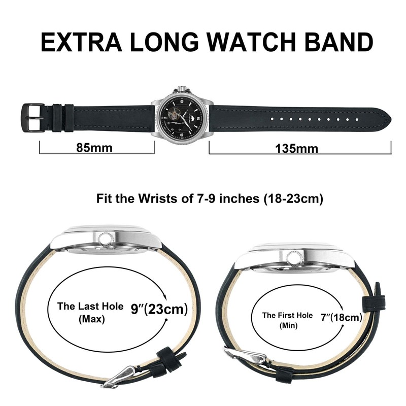 • Extra long watch strap: the length of this strap is 85 mm + 135 mm, which is longer than a normal strap and is suitable for wrists from 18 cm to 23 cm