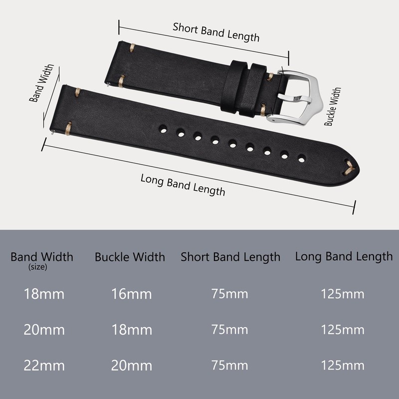 - Band Width (Size): Fit for different kinds of watch that uses 18mm, 20mm,22mm spring bars, please accurately measure your watch lug width and choose the right size