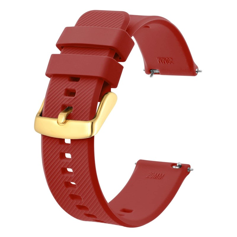 BISONSTRAP Watch Strap 22mm, Quick Release Silicone Watch Bands for Men Women (Wine Red, Gold Buckle)