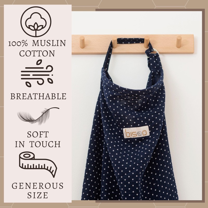 Bisoo Breastfeeding Cover for Mum - Adjustable 100% Muslin for a Breathable Privacy While Breastfeeding Your Newborn - Bag Included - Navy Blue