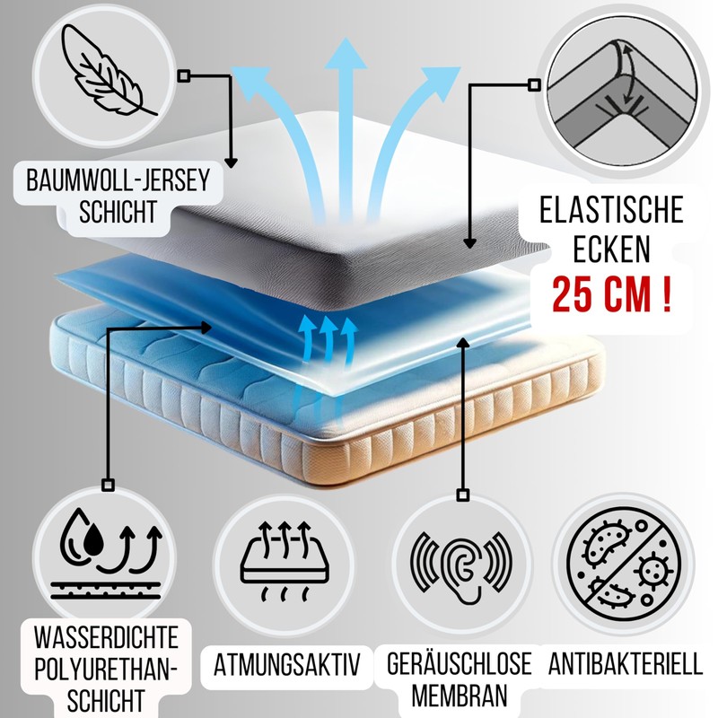 - 2-in-1 sheet. Our sheets are a wonderful invention combining a cotton top with a waterproof backing in one sheet. You get maximum softness while protecting the mattress while saving you money as you don't have to buy two separate products. Available in white and grey so they can be easily combined with any bedding colour.