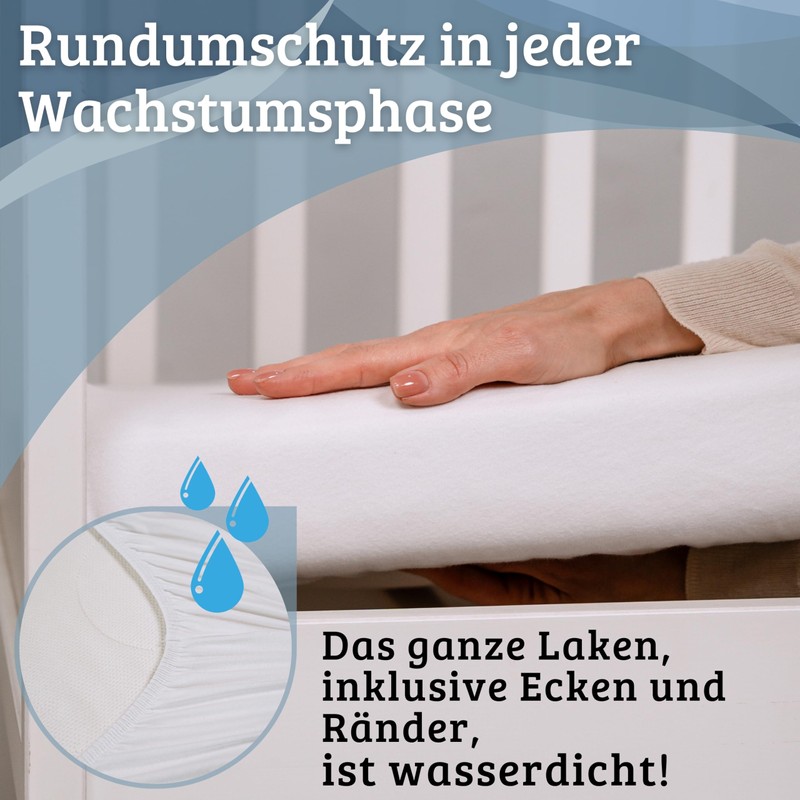 - Because the mishap never happens in the middle. Babies surprise you. Always. Don't look at it for a moment and the fitted sheet is wet. But never just in the middle. Always catch the corners. That's why we have made our waterproof fitted sheet to protect it all around. With real moisture protection, not only on the label. Whether playpen insert, baby bed, extra bed or next2me, our mattress protector will not let you down. And best of all, it stays dry. Even when it gets wild.