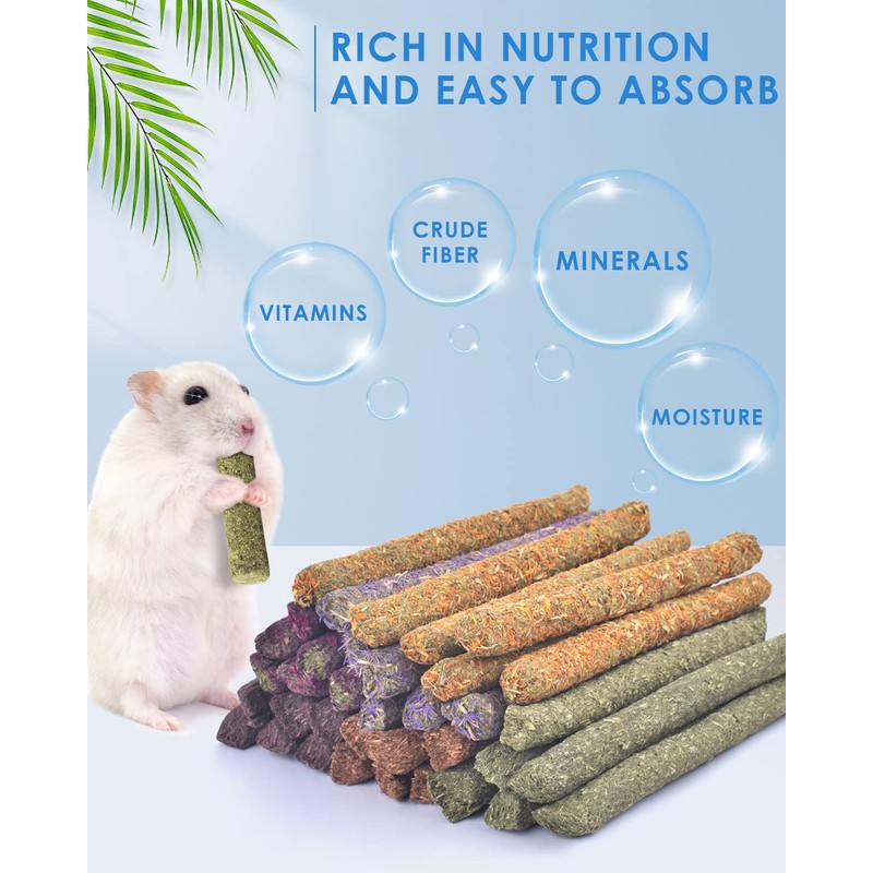 - Rich in Nutrition: Chinchillas treat and chews are made of natural grass, food and flower, which rich in high fiber to help pets promote intestinal health, effectively aid digestion, relieve tension, improve pet appetite, ensure the healthy growth of small pets