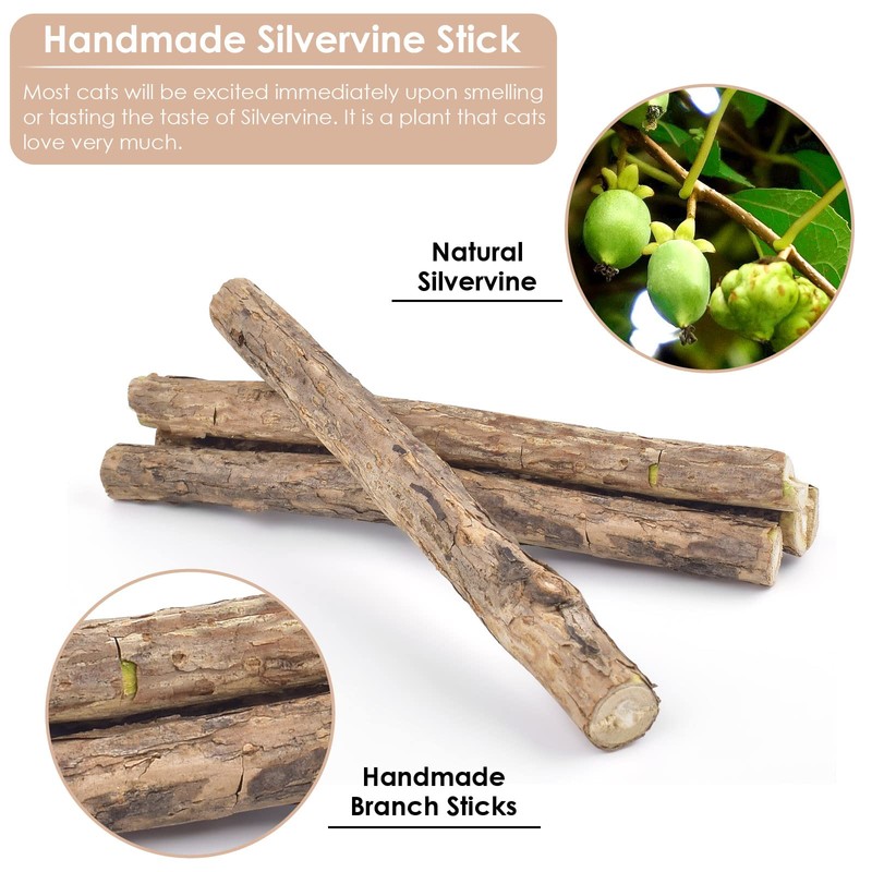 - Good Value for Package: 10 pieces silver vine sticks cats in a package, sufficient quantity to meet the needs of the cat for play let them pet spend a good day. Please take proper supervision when cats playing to prevent them from swallowing the feather