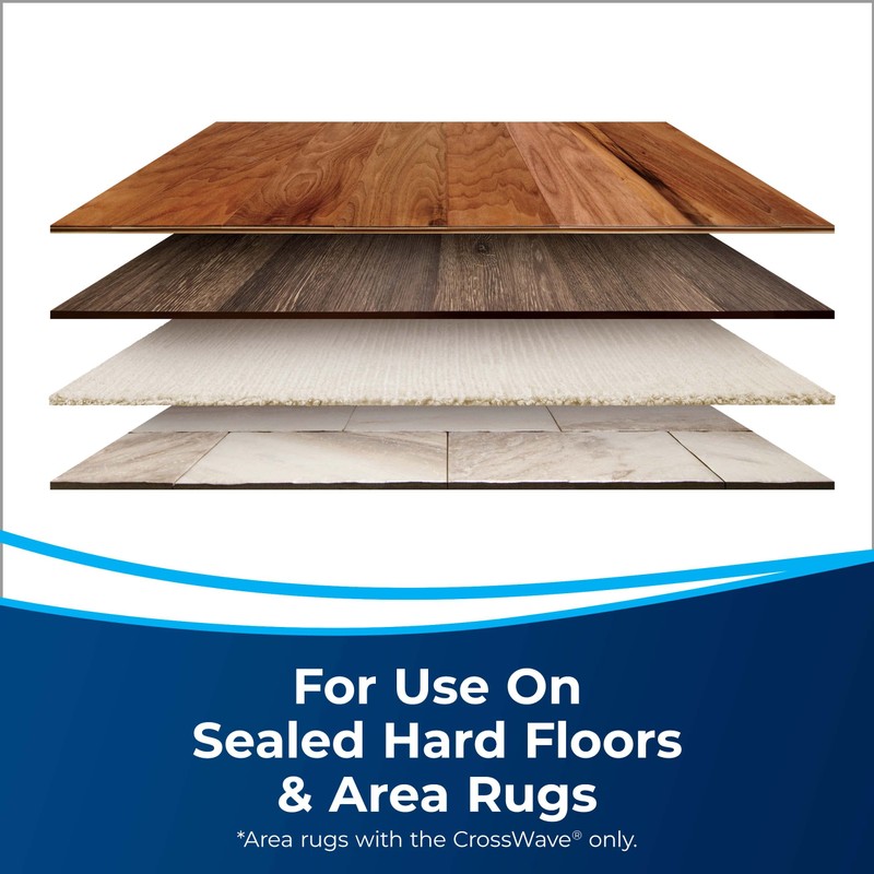 • Safe to use on sealed hard floors and area rugs*. *Area rugs for CrossWave machines only.