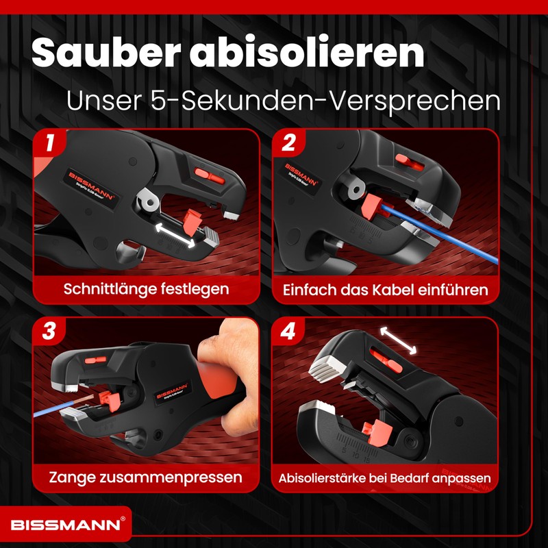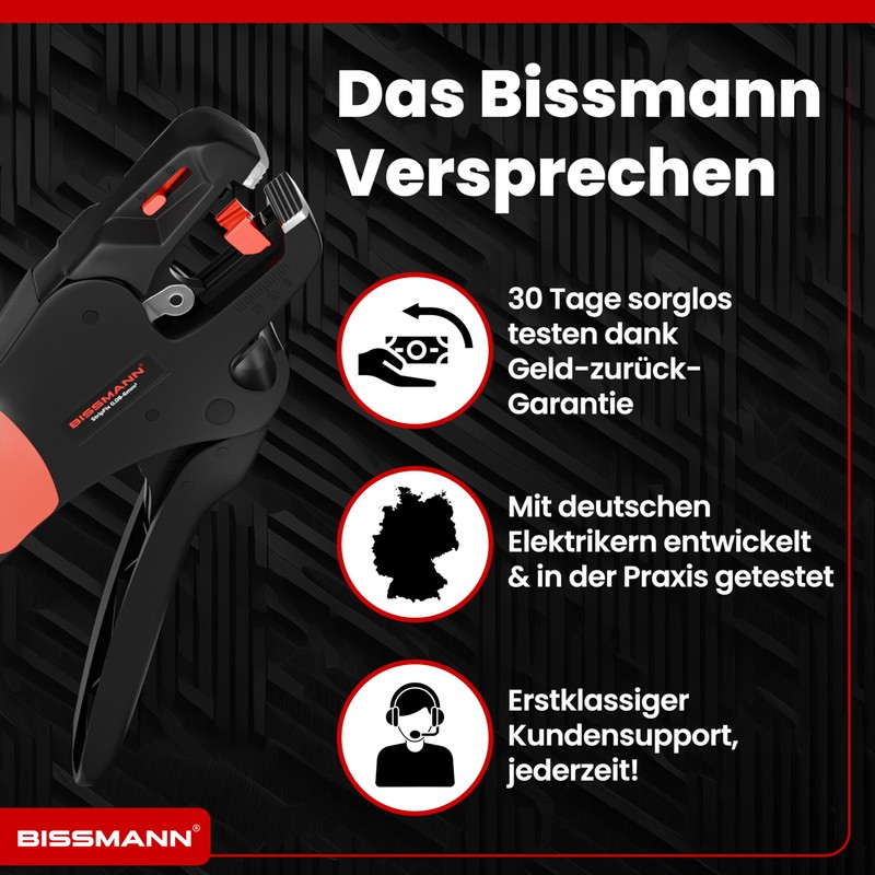We at Bissmann believe in this: innovative products and the highest quality standards belong together. That's why we have made it our mission to develop a wire stripper that not only makes your work easier, but also accompanies you for a long time.