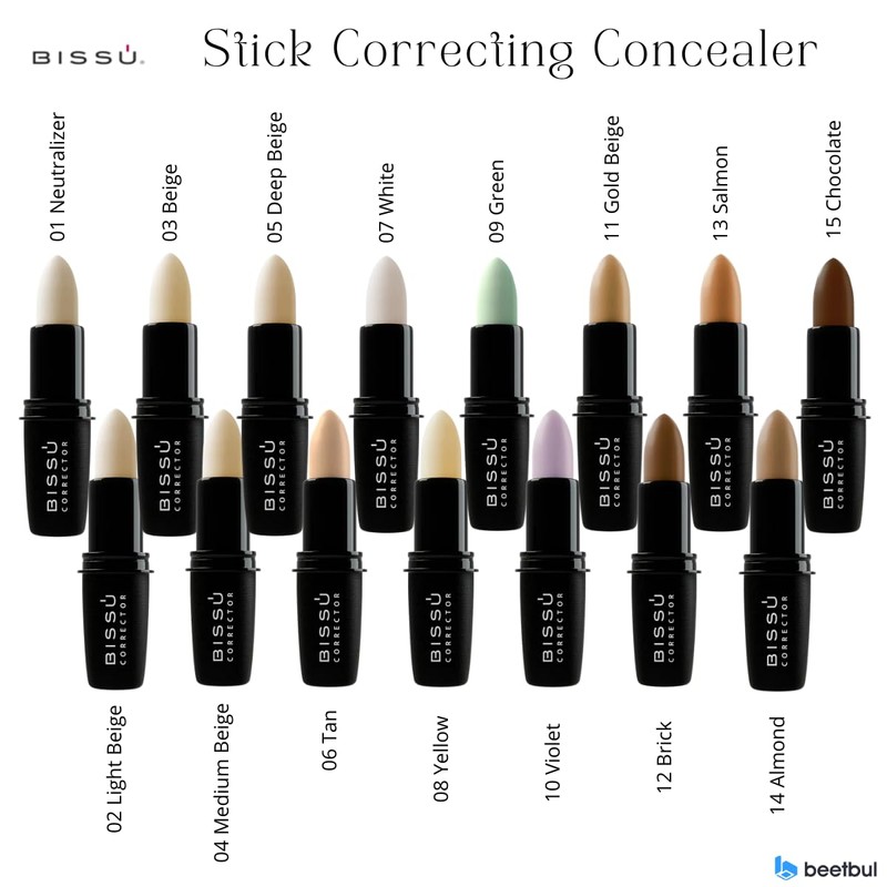 Bissú Stick Correcting Concealer - 15 Versatil Shades, Natural Finish, Contouring, Highlighting, Easy Application, 4,7 grms (Gold Beige, Stick)