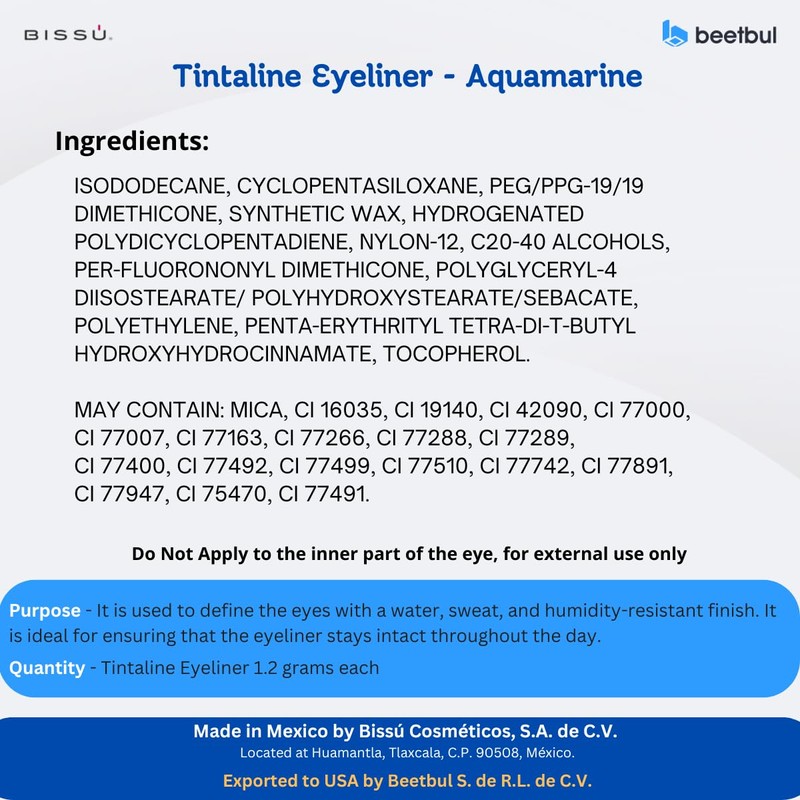Bissú Tintaline Eyeliner - 25 Vivid Colors, High-Coverage, Long-Lasting & Smudge-Proof (Aquamarine)