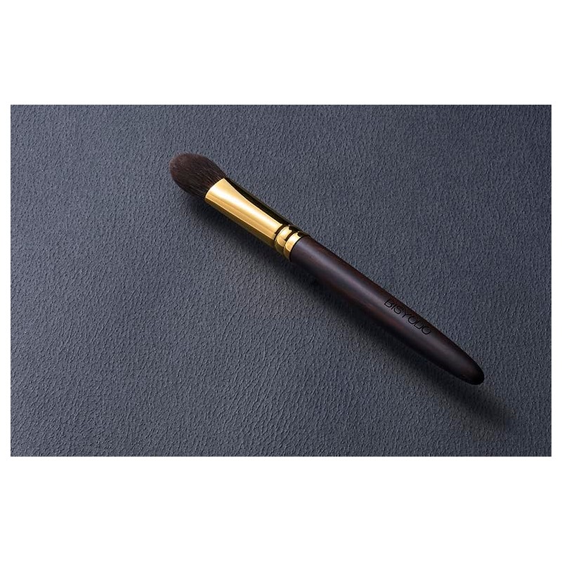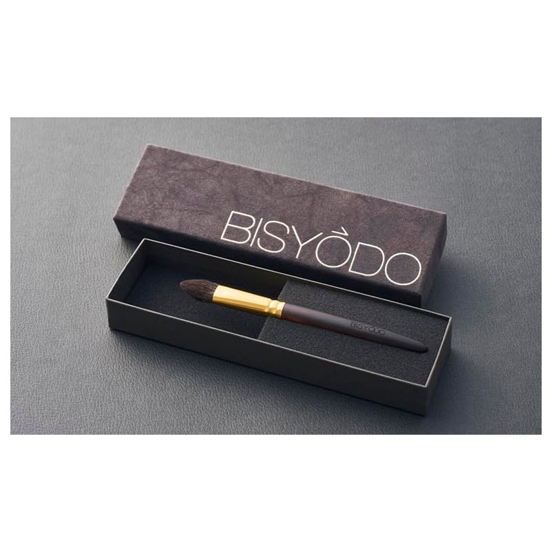 Description With an airy touch like angel wings, it is a very soft feeling that even people with sensitive skin can use. The triangular brush tip is ideal for highlighting around the eyes, the side of the nose, and the tip of the lips where you want a small turn. A variety of approaches are possible by using it properly, such as using it on the side for the nasolabial fold and using it on the flat surface for the dent under the eyes. Hair Material Bristle type : Grey squirrel Ferrule type:Brass (24 gold plated) Handle type:Ebony Grey squirrel:The gentle touch to the skin makes it possible to approach the vertical direction, where other hair materials are considered to be highly irritating to the skin. Shape (mm) Brush Length:160 Bristler Length:23 Hair width x thickness:18×11 【Grand Series】 Introducing the GRAND Series by Bisyodo, a collection of unparalleled luxury released in July 2022. This series features eight masterfully handcrafted makeup brushes, each adorned with premium-quality gray squirrel bristles known for their gentle touch on the skin. The elegant ebony wood handles and ferrules plated with 24k gold add a touch of sophistication. The unique softness of gray squirrel hair allows for vertical application without irritating the skin, reaching directly into pores to prevent pore floating. Its fine and delicate bristles enable a close-fitting powder application, creating a natural, radiant complexion. The GRAND Series also excels in subtly layering colors, allowing for precise control of color intensity. 【UYEDA BISYODO】 Discover the exquisite artistry of UYEDA BISYODO, a Japanese makeup brush brand that seamlessly blends tradition with innovation. Drawing from the revered heritage of Kumano brushes and infusing it with cutting-edge Western technologies, UYEDA BISYODO crafts brushes of unparalleled uniqueness. As Japan's sole ""raw hair import processing company,"" we pride ourselves on our proprietary ""refining technique"" that enhances the innate beauty of meticulously selected raw hair, ensuring each brush delivers the ultimate touch. Our brushes are more than just tools; they are masterpieces that encapsulate the essence of traditional Japanese beauty while embracing modern advancements. The exceptional ""Art of Creating Brush Tips"" is a testament to our commitment to quality. Our skilled artisans, adept in ancient techniques, forego cutting the bristles, preferring instead to naturally bundle them, breathing life into each brush. This intricate process, reserved for the most accomplished craftsmen, results in brushes that not only honor the quality of raw hair but also provide an unparalleled application experience.