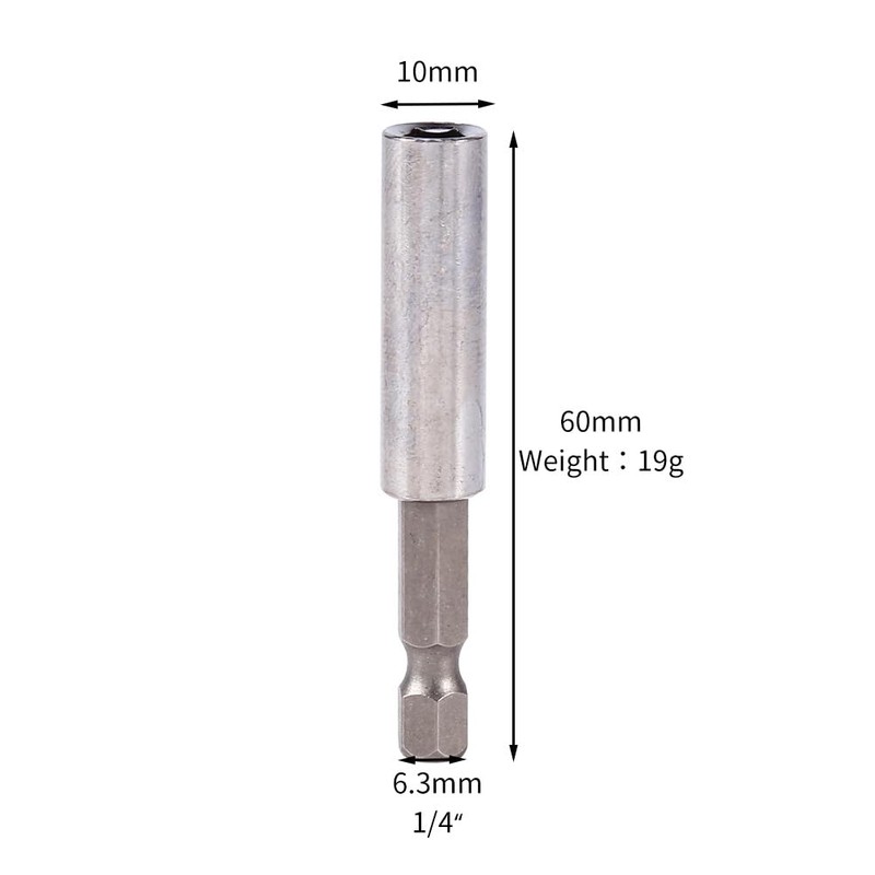 The extension holder is designed for 1/4 inch hex shank bits, can be used for pneumatic screwdrivers, electric drills, electric screwdrivers. It is strong magnetic and rustproof.