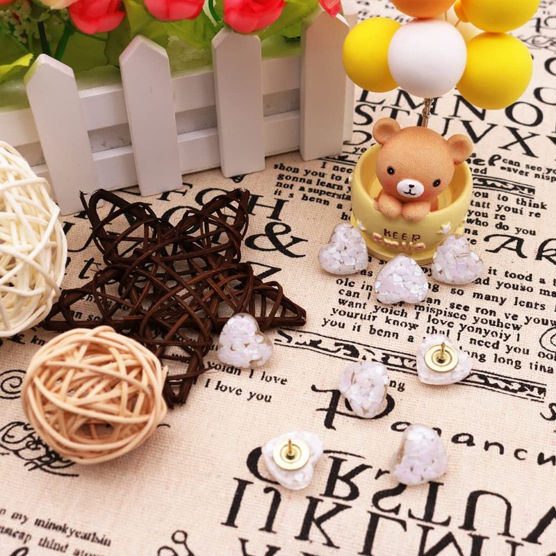- 【Cute Design】: The top of the pushpins is a heart-shaped sequin design, the sequins are wrapped in clear resin like a love amber. Full and round.