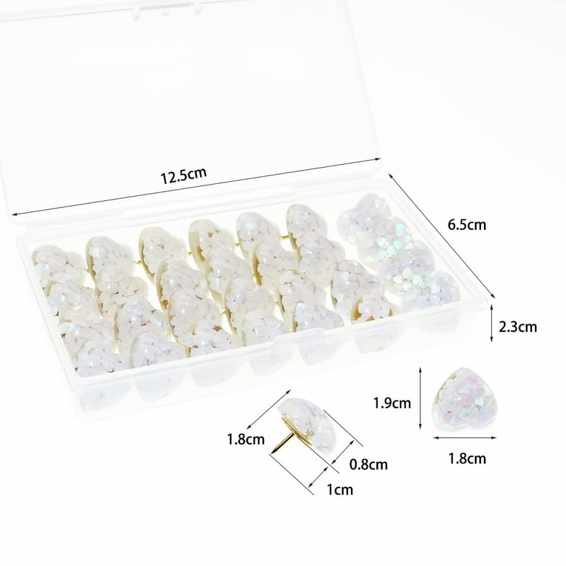 BITEYI Heart Sequin Push pins,30 Pcs Cute Heart Amber Thumbtacks Decorative Pushpin for Photos Wall,Maps,Bulletin Board,Cork Boards(White)