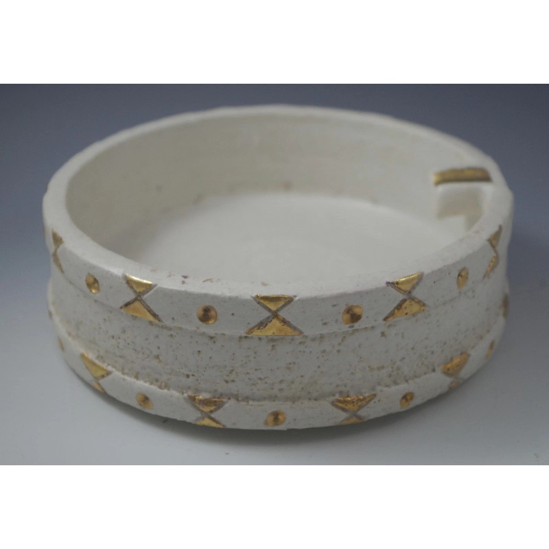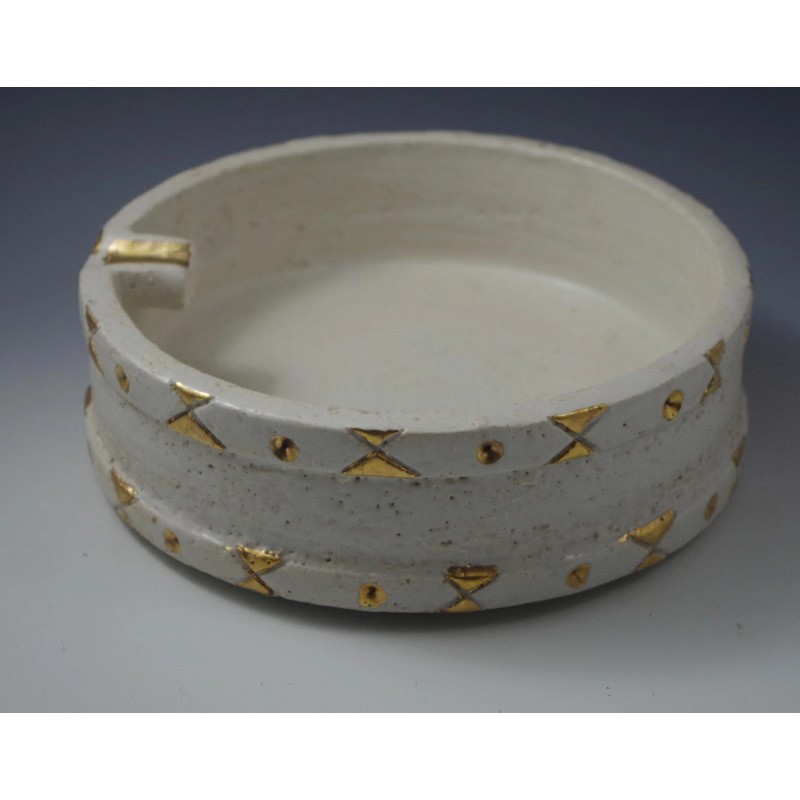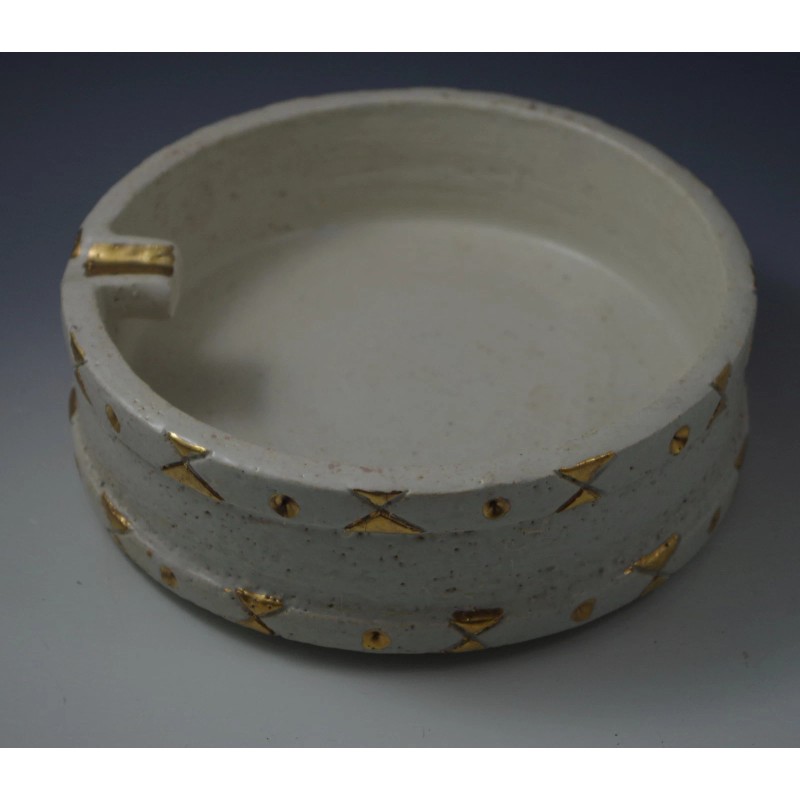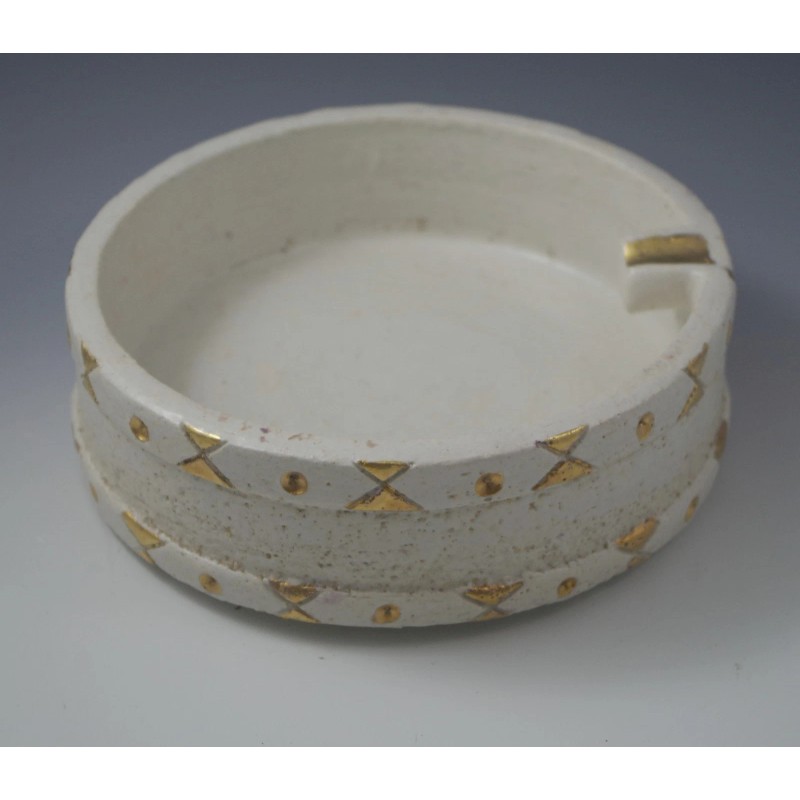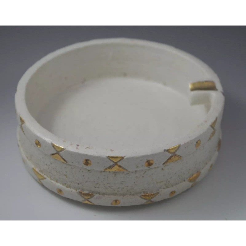 BITOSSI MID CENTURY BITOSSI ITALY RAYMOR LARGE CIGAR ASHTRAY WHITE AND GOLD SGRAFFITO #2