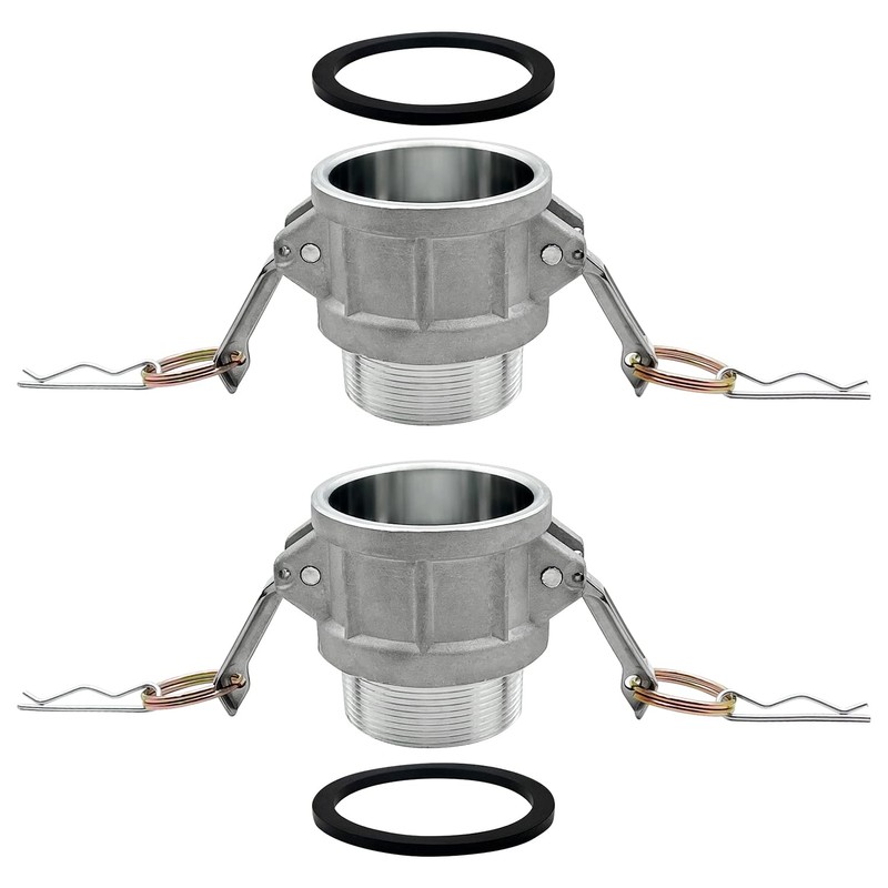 BITOTU 2PCS Type B Aluminum Global Cam and Groove Hose Fitting NPT B-200 2" Type B with 2 PCS Camlock Gasket Female Camlock with Male Threads (2 inch, Type B)