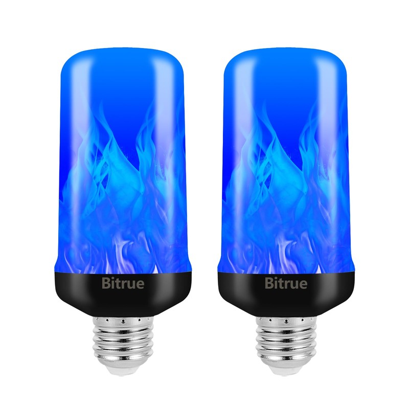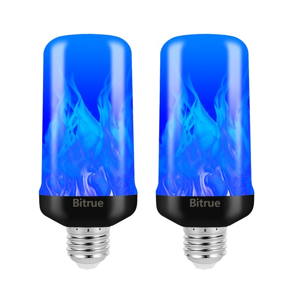 Bitrue LED Flame Light Bulbs, 4 Modes Blue Flame Effect Light Bulbs, E26 Base Fire Light Bulb with Gravity Sensor, Flickering Light Bulbs for/Home/Party Decor(Blue 2 Pack)