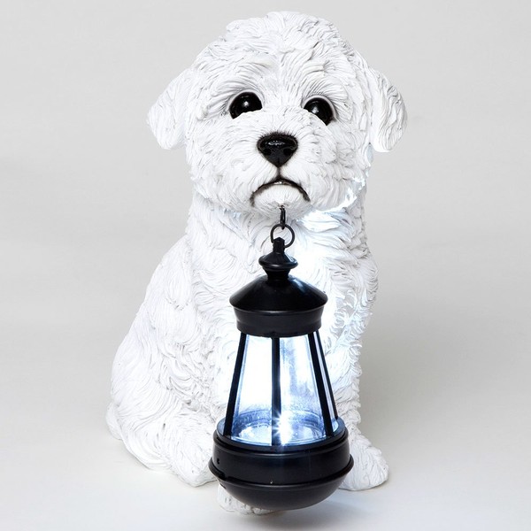 - Our Bichon Solar Powered Lantern Statue is a delightful greeter to welcome visitors at your front door, on your patio, or in your garden or yard.