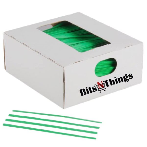 Bits N Things Twist Ties for Bags | Bulk 2000 Pack with Dispenser Box | 4" Coated Wire Ties Reusable Bread (Green)