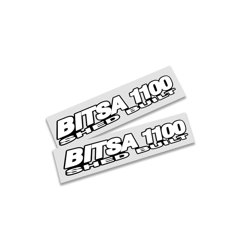 • "BITSA 1100 SHED BUILT " for custom motor graphics stickers decals x 2 white black