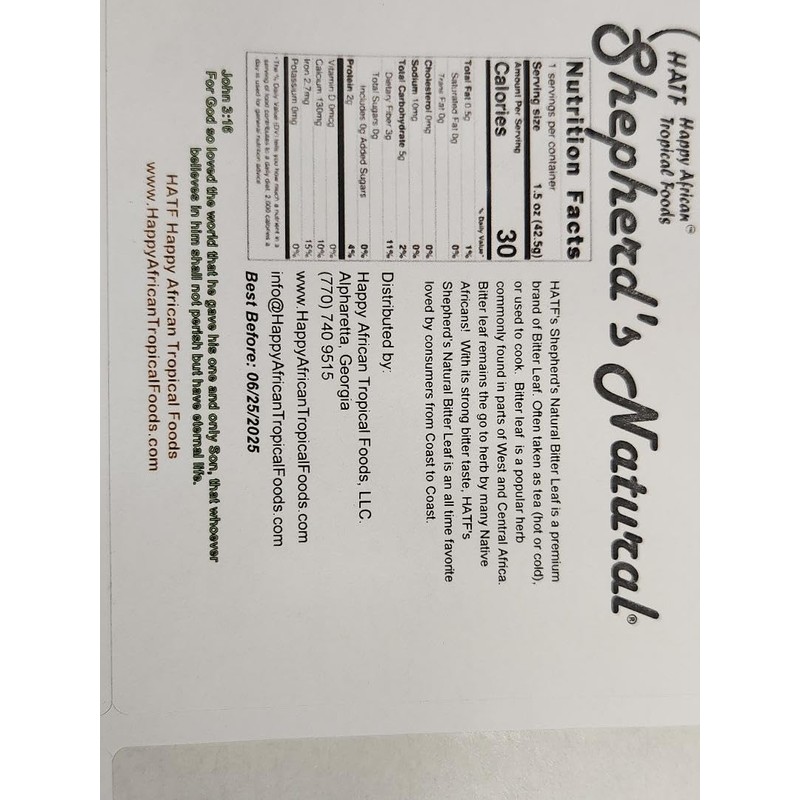 Bitter Leaf (Dry) by Shepherd's Natural. Non GMO. Sand Free 1.5 oz / 42.5 g bag