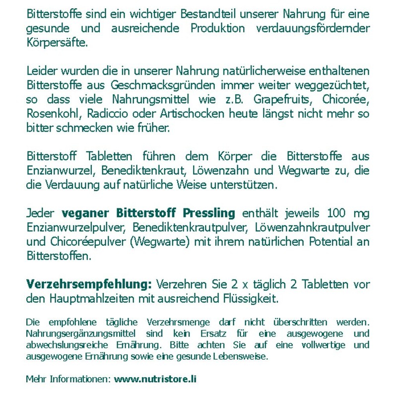 Bitter Substance Vegan Tablets Pack of 150 Bitter Substances from Gentian, Dandelion, Waywart and Benedict Herb