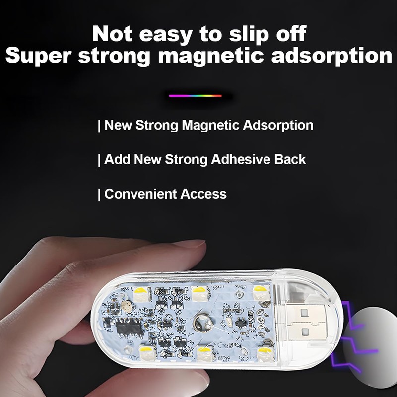 - Convenient and Fast Charging: This car interior LED light is easy to install on the surface of the object by magnetic adsorption and double-sided adhesive tape. First, you should stick the included double-sided tape in one place. Then, you just need to gently attach it to the light through the magnet to complete the installation and fixation. USB charging design does not need to be disassembled.