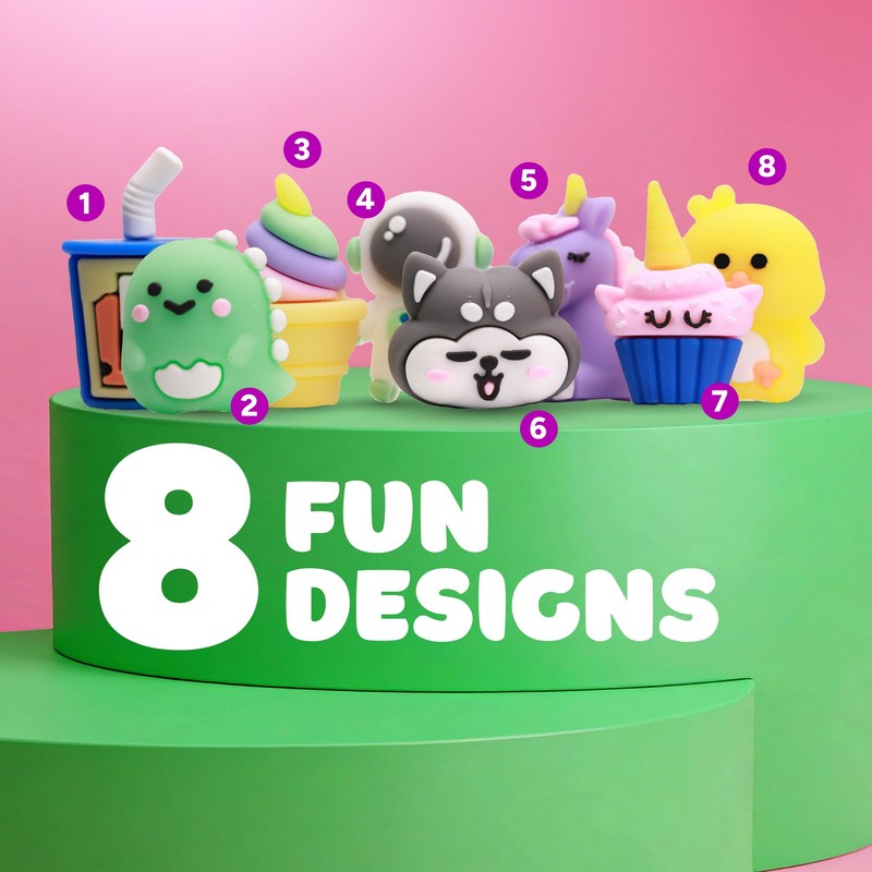 Whether you're filling vending machines, classroom treasure boxes, or party favor bags, these cute and collectible pencil toppers are a guaranteed hit with kids of all ages. Each pack includes 100 mini toppers featuring a fun mix of designs like an akita dog, dragon, unicorn cupcake, duck, astronaut, boba tea, and more!