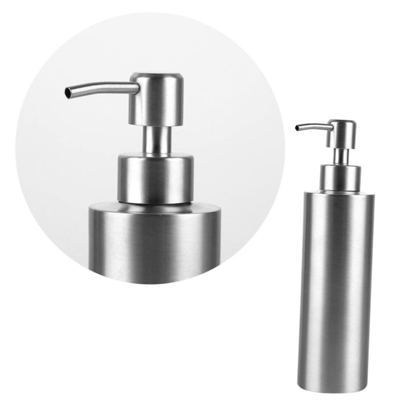 refillable lotion The silver color and smooth surface make it looks more fashionable and advanced.shampoo pump dispenser This soap dispenser is made of stainless steel, which is and rust proof to use and display in your bathroom.foam soap dispenser Suitable for home use and bar bathroom
