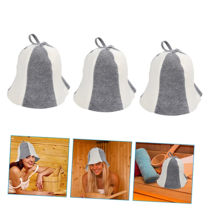 BIUDECO 3Pcs Felt Sauna Hats for Bathing Thick Sauna Caps for Men and Women Comfortable Protective Sauna Hats Grey and for Sauna and Shower Use