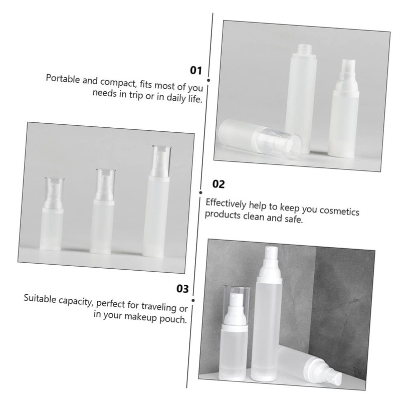- Makeup bottles: [travel pump bottle]--suitable for travel, business trip and outdoor activities. this travel bottle can store several kinds of cosmetic products at once.