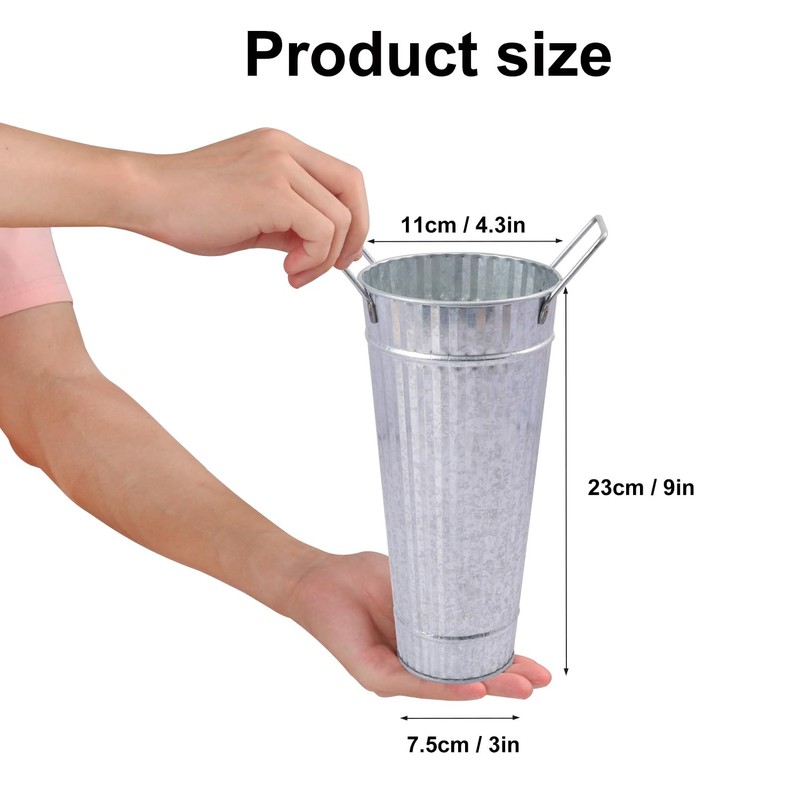 - Perfect Size for Versatile Use: Each galvanized Metal Flower Vase measures 9 inch tall, 4.3 inch top diameter, 3 inch bottom diameter, ideal for floral arrangements, farmhouse centerpieces, wedding decorations, and home décor without taking up too much space.