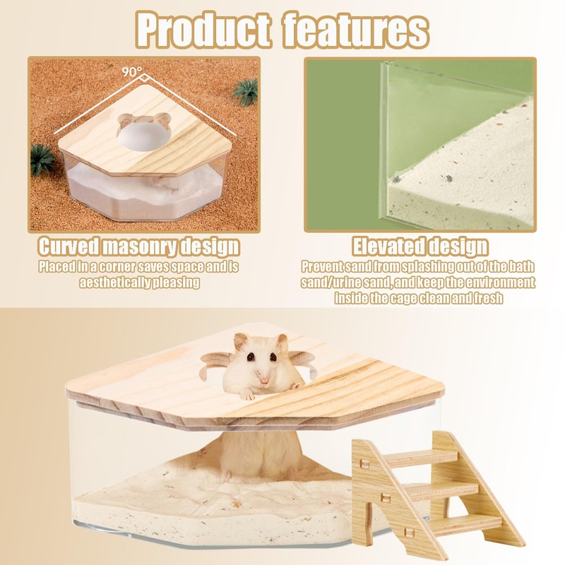 - Enhanced Comfort and Safety: This sand bath container features a secure assembly and a top natural wooden cover that enhances structural stability, preventing tipping and ensuring the safety of your beloved hamster.