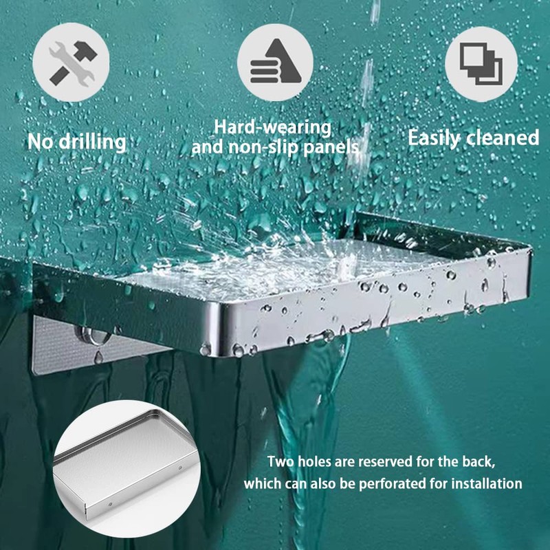 Biutimarden 2 Stück Duschablage Ohne Bohren,Anti Rutsch Oberfläche Selbstklebend Wandhalterung aus Edelstahl Duschregal Rostfreier für Bad Dusche und Küche Badzubehör(19CM,Gebürstet)