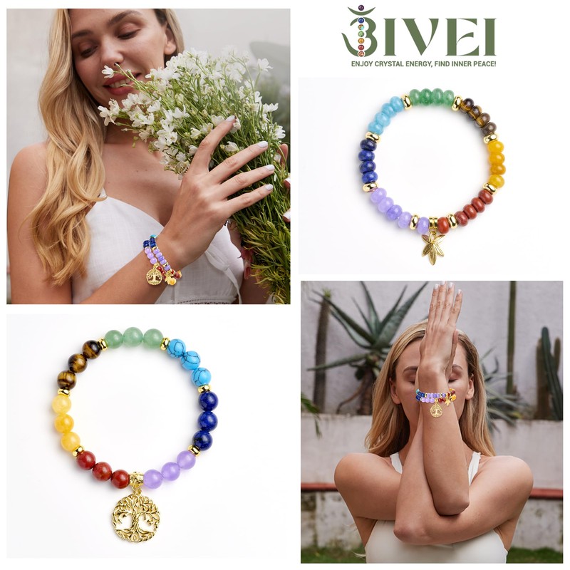 - Natural stone bracelet for women: Each bead in this stylish and beautiful bracelet is hand-picked and threaded on a high-quality elastic bungee rope to ensure the best quality. Durable and flexible. Each bracelet features a tree of life and a bronze leaf pendant. Perfect for everyday wear, anniversaries, parties and more. Please note that natural gemstones vary in colour.