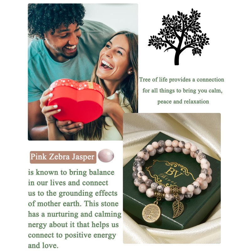 - 【Natural stone bracelets for women】Each beads in this fashion&beautiful bracelet are hand picked and strung on high quality elastic stretch cord to ensure the best quality. Durable and flexible.Each bracelets set with a bronze life tree and leaf charm.Great for daily wear, anniversary,party etc. Please note natural stones vary in colors. Each bead is unique. You will receive the similar item as picture shown.