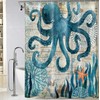 BIVINAR Long Octopus Shower Curtain 72 x 78 Inch, Ocean Themed Shower Curtain for Bathroom Decor, Nautical Fabric Shower Curtain with 12 Hooks