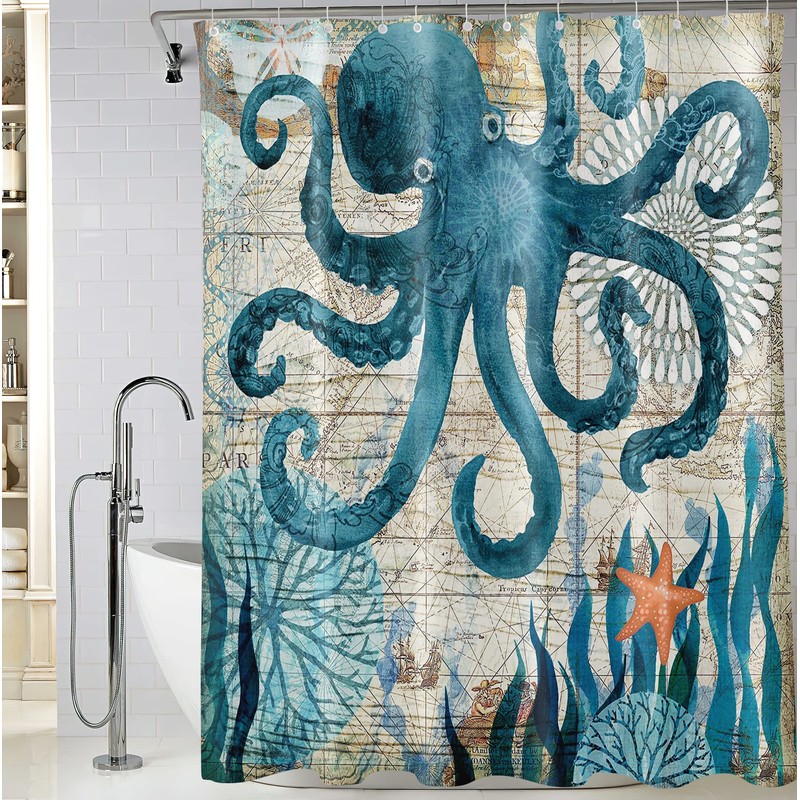 - Good Design: Adopting high-definition pattern printing technology, vibrant color and vivid, the bathroom shower curtain octopus has good light transmittance.