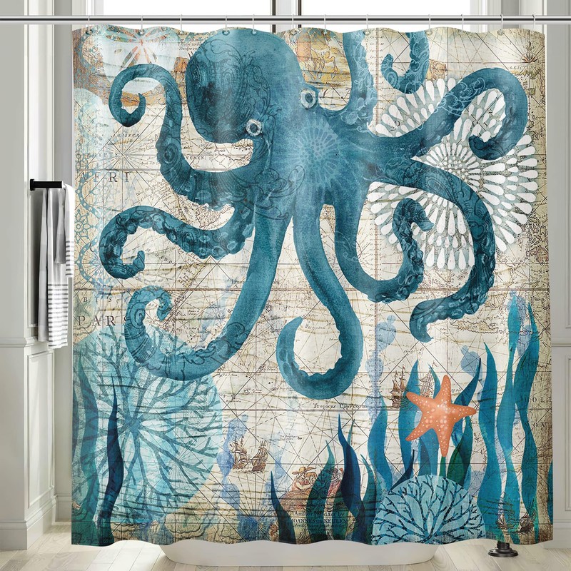 - Premium Fabric: Made by high-quality polyester fabric, this octopus shower curtain is soft and comfortable, no fading, no odor.