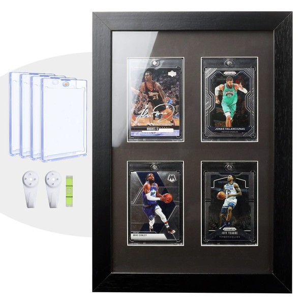 - 【 Dimensions 】The frame outer size is 14.5" W X 10.6" H X 1.2" D. Each compartment cut out size is 3" W X 4.3" H X 0.4" D. Complimentary 4PCS of 35PT magnetic card holders, protect your Baseball, Basketball, Hockey, Football, Pokemon, MTG, Yugioh Cards and more. NOTE: Cards not included.