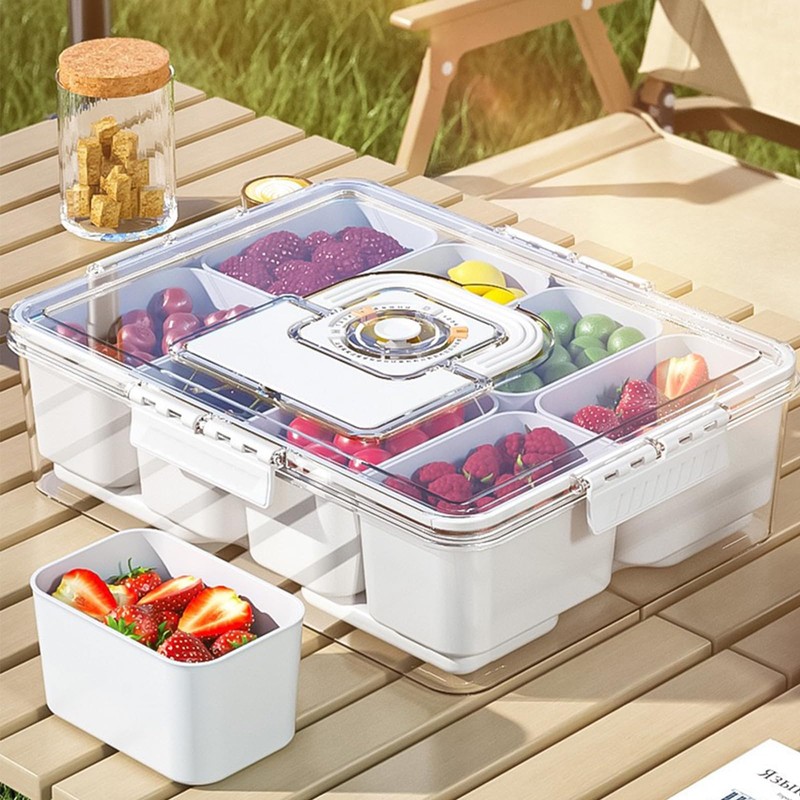 Snackle Box Container With Ice Pack,Chilled Serving Tray,Snackle Box With Ice Pack & Lid & 8 Compartments