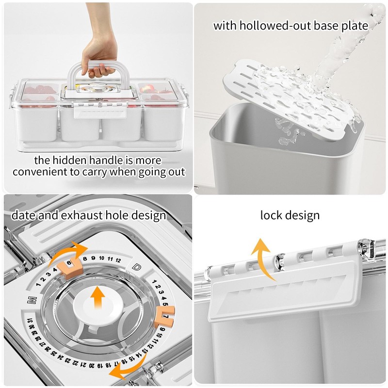 • Vent, Date Marker & Easy Carry Handle: snack box container features built-in vent for pressure relief, a date marker for tracking freshness, and a sturdy handle for easy carrying