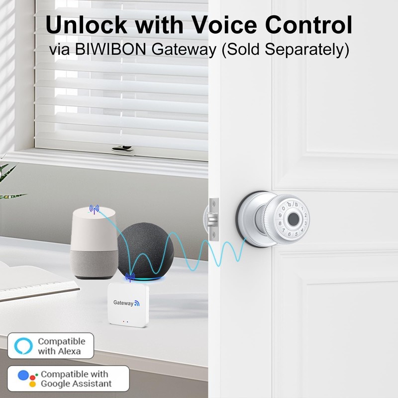 - Seamless Remote and Voice Control: Pair the thumbprint door knob with the BIWIBON gateway for intuitive remote and voice control via your smartphone. Manage access, check lock status, and control settings from anywhere.