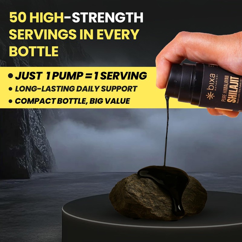 bixa BOTANICAL bixa BOTANICAL Himalayan Shilajit for Men, Pure Resin with 75% Fulvic Acid, Supports Energy, Stamina & Muscle Health C Fast-Dissolving, Lab-Tested, Vegan, Mess-Free Pump, Easy to Carry, 50 Servings