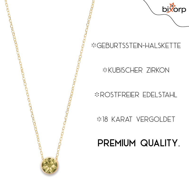 Bixorp Birthstone Necklace with Cubic Zirconia Pendant - Stainless Steel Chain with Round Zirconia Crystal - Gold & Silver, Stainless Steel, Cubic Zirconia