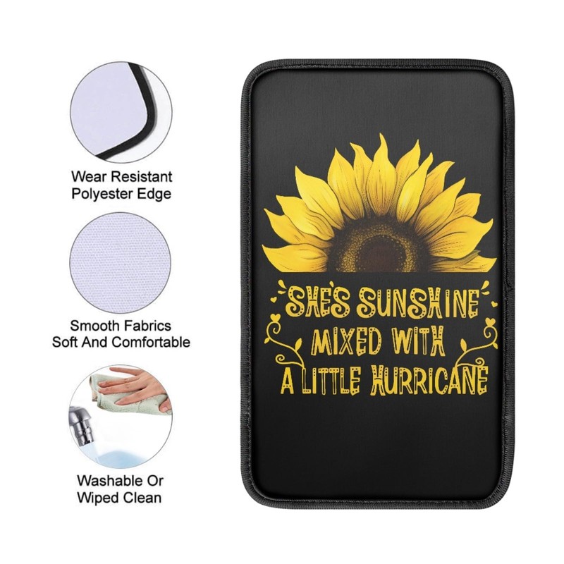Biyejit Car Center Console Pad, Sunflower Butterfly Print Neoprene Auto Center Console Car Armrest Seat Box Cover Protector Car Interior Decorations