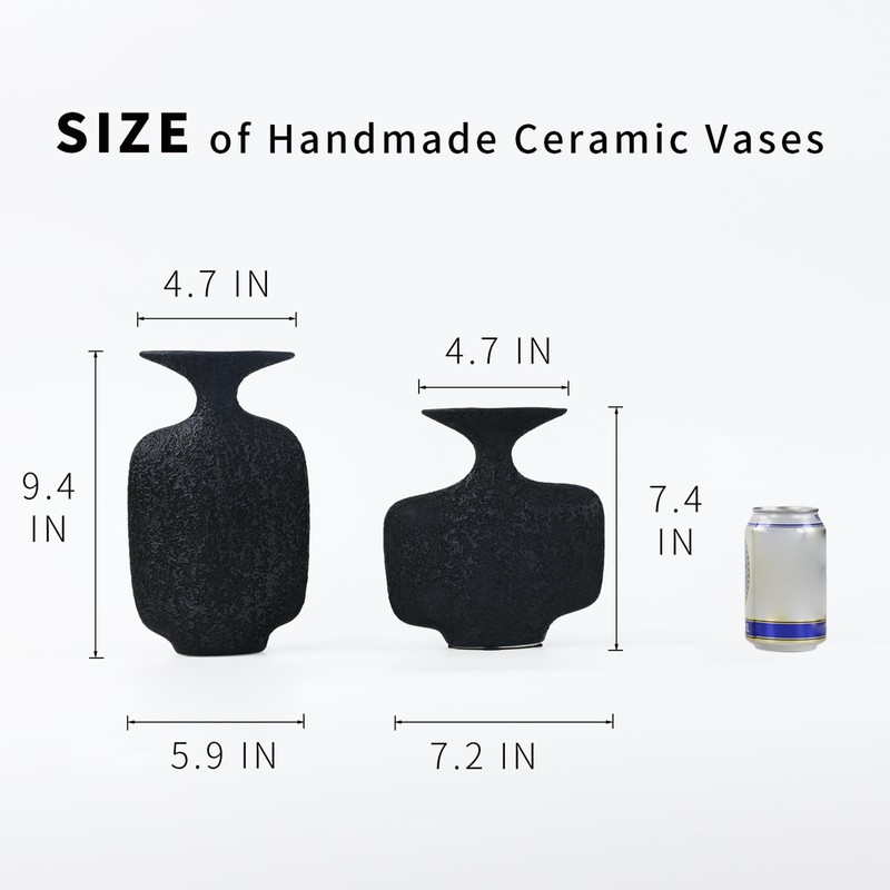- [Measurements] - The rustic vase measures 9" height and 5.9" width with 4.7" opening.Perfect for greenery and dry or faux florals,but also can hold water for fresh flowers.The ceramic vase can be displayed indoors or outdoor as a fine decorative piece.