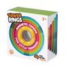 - Contains 5 rings in different sizes, sorted from larger (12cm) to smaller. The rings have a soft and rubberised surface and engraved textures