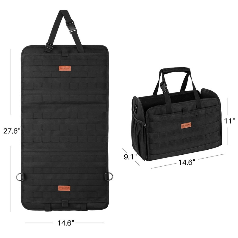 - Keep Your Car Organized: BIZOCO car back seat organizer, measuring 27.6" x 14.6", is designed with a standard MOLLE webbing; providing extra storage space and convenient attachment for various tactical pouches and personal items; smart layout for tidy and quick access