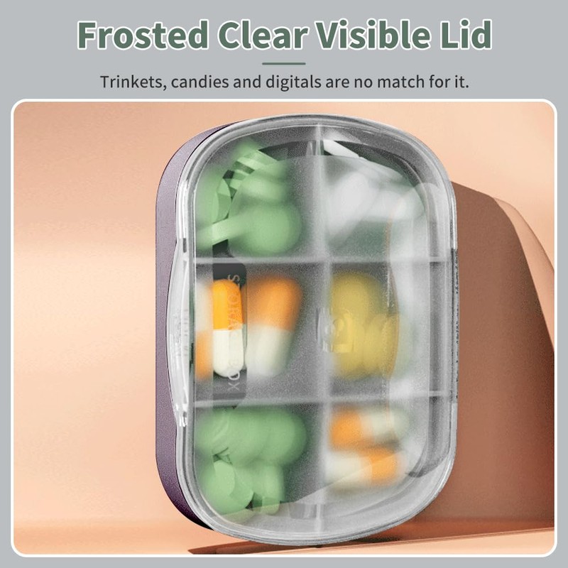 BJGZ-HC Compartment Small Pill Box, 7 Day Pill Box, Purple Pink Daily Vitamin Organizer for Fish Oil/Medicine/Supplements (Brown, 6 grids)