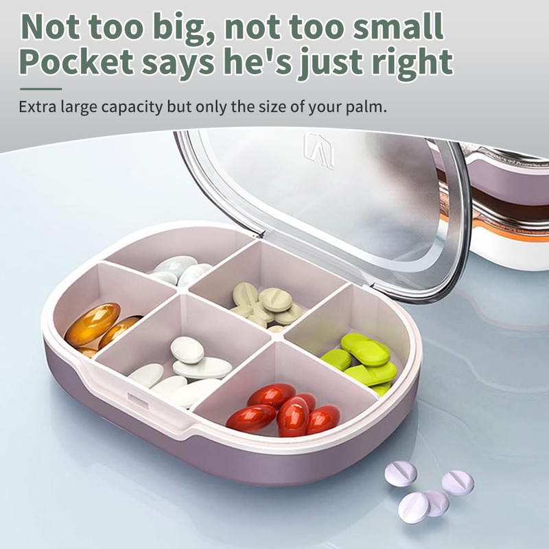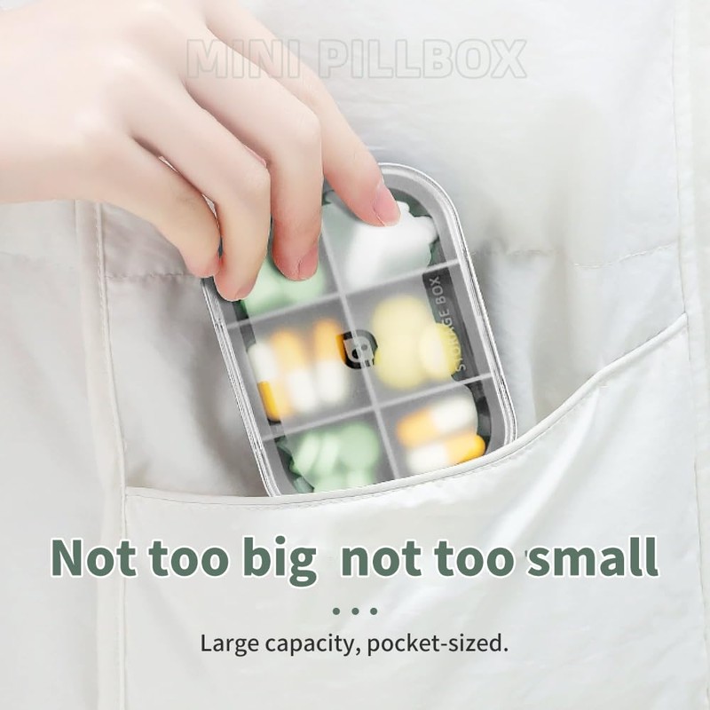 - Portable Size for TravelingSize of this portable pill box is (small 2.9x2.7x0.9inches, large 3.8x2.7x0.9inches); can be easily put in your purse, suitcase, backpack, handbag, or your coat pocket, without taking up space, very convenient for a trip